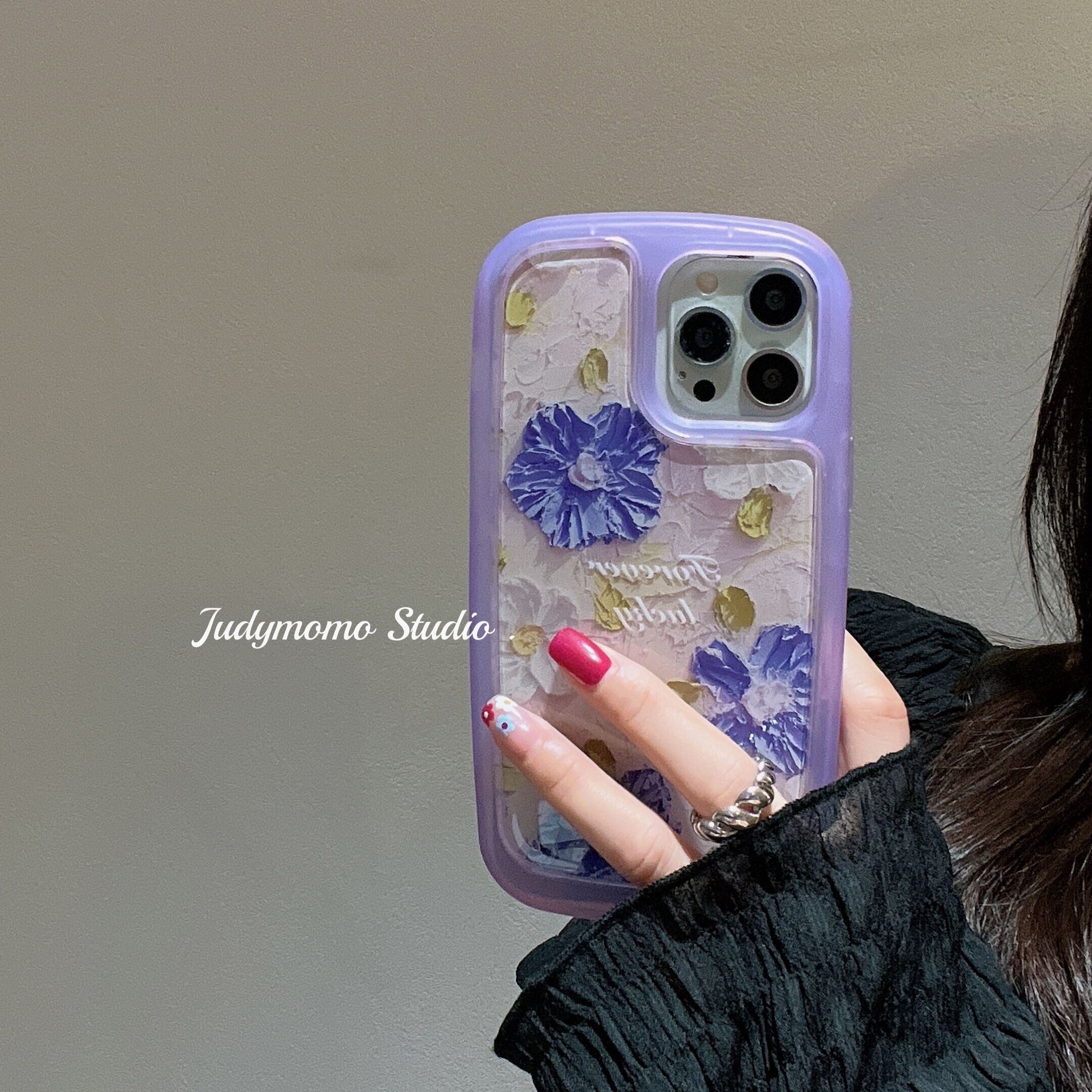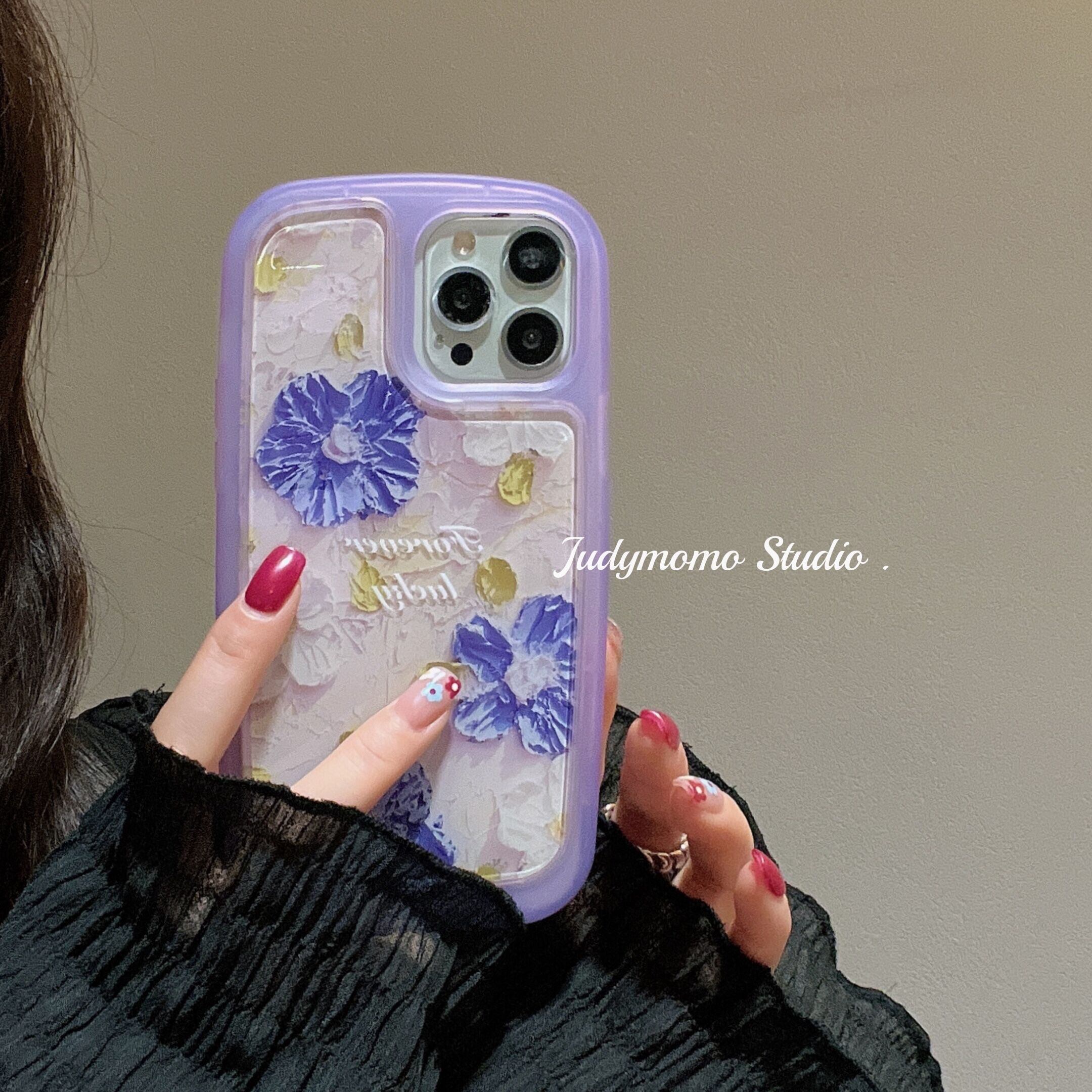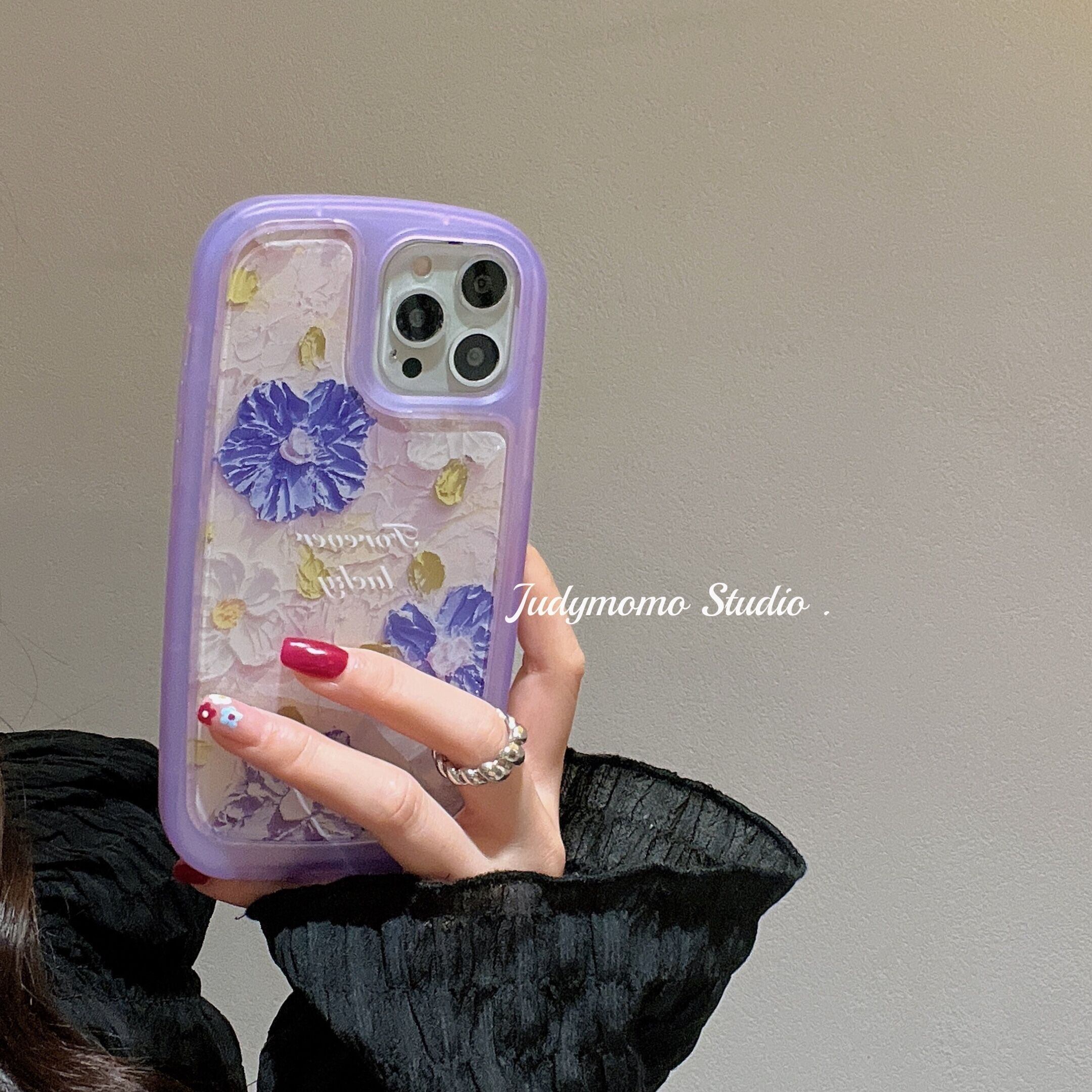 ins高精細紫油絵花に適したiPhone13携帯電話シェル12promaxアップル11新しいxr女性x フラワーデザイン パープル NEW iphoneケース かわいい MOMO6777060610