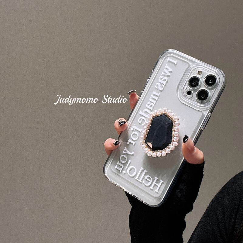 insシンプルで高度なブラックジェムストーンブラケットに適したiPhone13携帯電話シェル12promaxアップル11透明x NEW iphoneケース かわいい MOMO73816357368