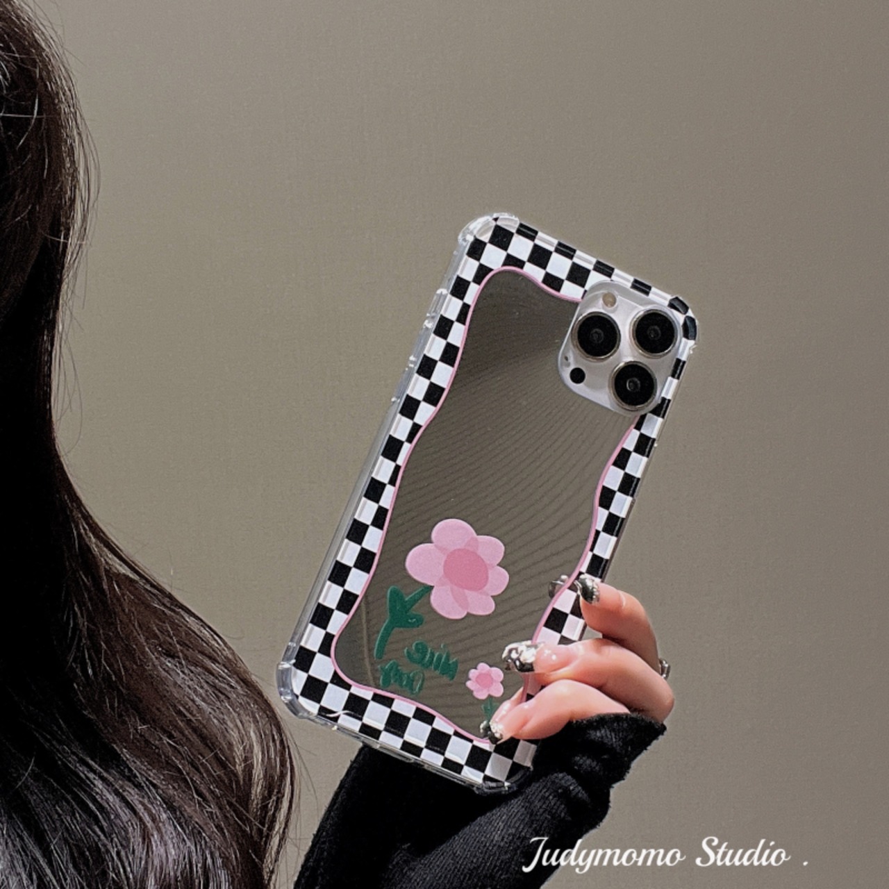 insレトロチェッカーボードフラワーに適したiPhone13oromax携帯電話シェル12ミラーアップル11アドバンストxr フラワーデザイン NEW iphoneケース かわいい MOMO97646190713